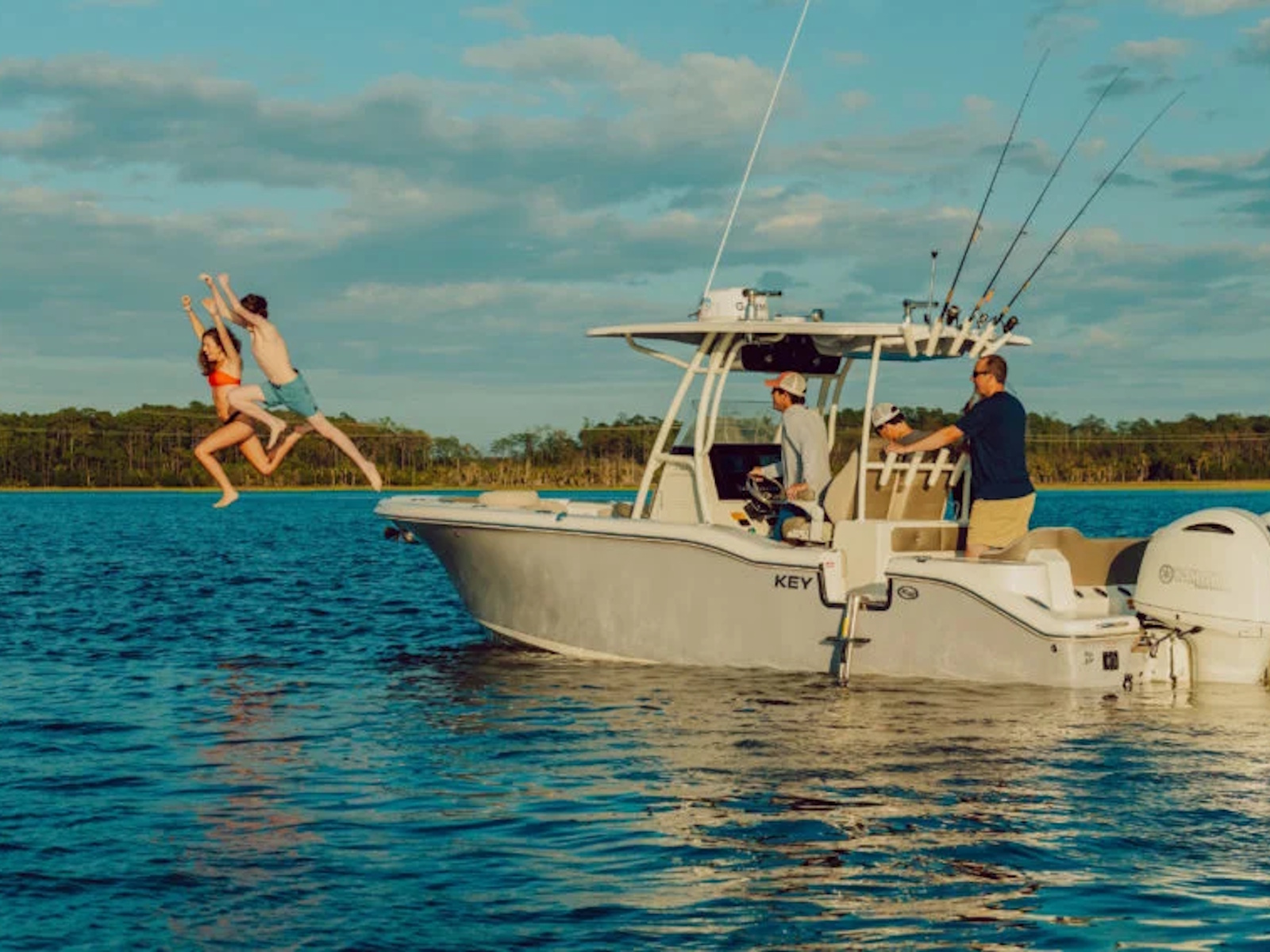 This model is full of features that enhance the design and performance, providing the active family with all they could ask for on the water. Some of the standard features include an under-deck windlass, eight-speaker stereo with amplifier, hardtop, side entry door with hidden ladder, power assist steering, and Seakeeper Ride system. It remains a highly fish-able vessel with features like dual live wells, a macerated fish box, 22-rod holders, and horizontal storage racks under the gunnels to hold your longest saltwater rods.